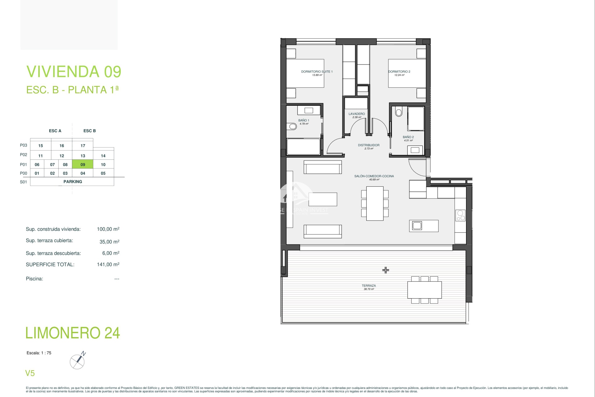 El interior de las viviendas está diseñado para ofrecer el máximo confort y funcionalidad. Los apartamentos y opciones en planta baja están disponibles con dos o tres dormitorios y dos o tres baños, adaptándose a las necesidades de diferentes tipos de familias. Las viviendas están completamente amuebladas y cuentan con electrodomésticos modernos, suelos de madera que aportan calidez, persianas eléctricas para mayor comodidad y armarios empotrados que optimizan el espacio de almacenamiento. Además, la preinstalación de aire acondicionado asegura un ambiente agradable durante todo el año.
