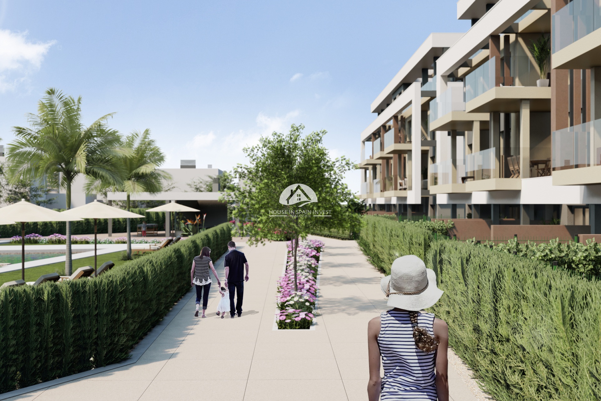 De buitenruimtes van dit residentiële complex zijn ontworpen om een aangename en functionele omgeving te bieden. De woningen beschikken over privéterrassen, ideaal om te genieten van het mediterrane klimaat en ontspannende momenten buiten. Daarnaast omvatten de gemeenschappelijke ruimtes goed onderhouden tuinen die een groene en rustige ruimte bieden voor alle bewoners. De aanwezigheid van een gemeenschappelijk zwembad voegt een vleugje luxe toe, waardoor men zich kan verfrissen en socialiseren in een veilige en gecontroleerde omgeving.