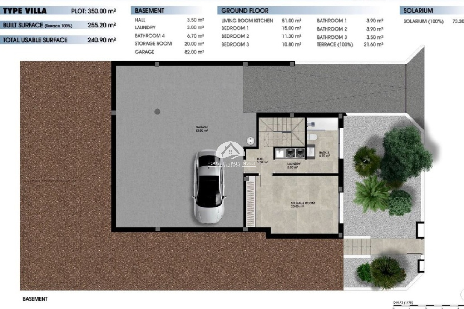 Het interieur van deze vrijstaande woningen is ontworpen om maximaal comfort en functionaliteit te bieden. Met drie slaapkamers en drie badkamers is elke woning uitgerust om te voldoen aan de behoeften van gezinnen of stellen die op zoek zijn naar ruimte en privacy. Ingebouwde kasten optimaliseren de opslag, terwijl elektrische rolluiken een vleugje moderniteit en gemak toevoegen. De porseleinen tegelvloer biedt een elegante en duurzame afwerking, ideaal voor dagelijks gebruik. De pre-installatie van airconditioning zorgt ervoor dat het binnenklimaat altijd aangenaam is, aangepast aan persoonlijke voorkeuren. Bovendien beschikt elke woning over een garage, die een veilige ruimte biedt voor parkeren en extra opslag.