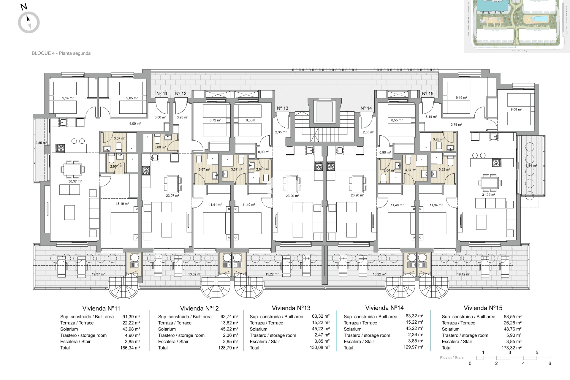 Het interieur van de woningen is zorgvuldig ontworpen om een gezellige en functionele ruimte te bieden. De indelingsopties omvatten woningen met 2 en 3 slaapkamers, allemaal met 2 badkamers, wat flexibiliteit biedt voor gezinnen van verschillende groottes. Keramische vloeren geven een moderne uitstraling en zijn gemakkelijk te onderhouden. De toevoeging van een privéjacuzzi in sommige woningen voegt een element van luxe en ontspanning toe. Bovendien zorgt de pre-installatie van airconditioning ervoor dat de woningen het hele jaar door een aangename temperatuur behouden.