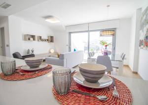 The interior of these homes in Vistabella is designed to offer a cozy and modern environment. Ceramic floors add a contemporary touch and are easy to maintain, while built-in wardrobes in the bedrooms provide efficient and organized storage. The layout of the properties, with two or three bedrooms and two bathrooms, is designed to maximize space and comfort. Kitchens and living rooms are designed to be functional and welcoming, creating a perfect environment for daily life and entertainment. Every detail has been carefully considered to offer a home that combines style and practicality.