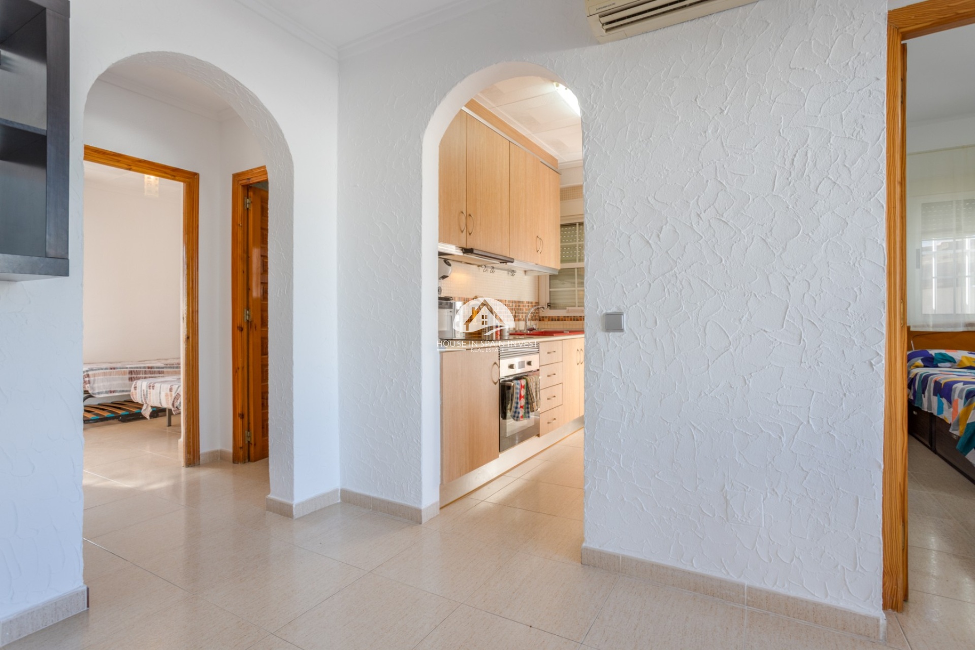 Discover this charming detached villa, located in a quiet and pleasant residential area of Torrevieja, perfect for those seeking privacy, comfort, and a high quality of life near the sea. The property sits on a spacious 300 m² plot and offers ample outdoor space to enjoy the Mediterranean climate year-round. The property comprises 60 m² of living space, practically and functionally laid out. Inside, you'll find three bright bedrooms, two with fitted wardrobes, and two full bathrooms, ideal for a family or for entertaining guests. The separate kitchen is fully equipped with appliances and features a utility room directly adjacent to the kitchen for added convenience and storage. The villa is in good condition and is sold furnished, ready to move into. The living room is equipped with air conditioning, ensuring comfort in any season. Outdoors, the property boasts a beautiful and practical recreation area with a private pool, perfect for relaxing and enjoying time with family and friends. It also includes a fully tiled terrace, ideal for al fresco dining, a storage/laundry room, and a private parking space. The west-facing location ensures beautiful sunsets and abundant natural light in the afternoon. Location and distances:Beach: 15 minutesLeisure areas, restaurants, and shops: 5 minutesGolf course: 10 minutesAirport: 40 minutes An ideal property as a permanent residence, holiday home, or investment, combining privacy, outdoor space, and a prime location on the Costa Blanca.