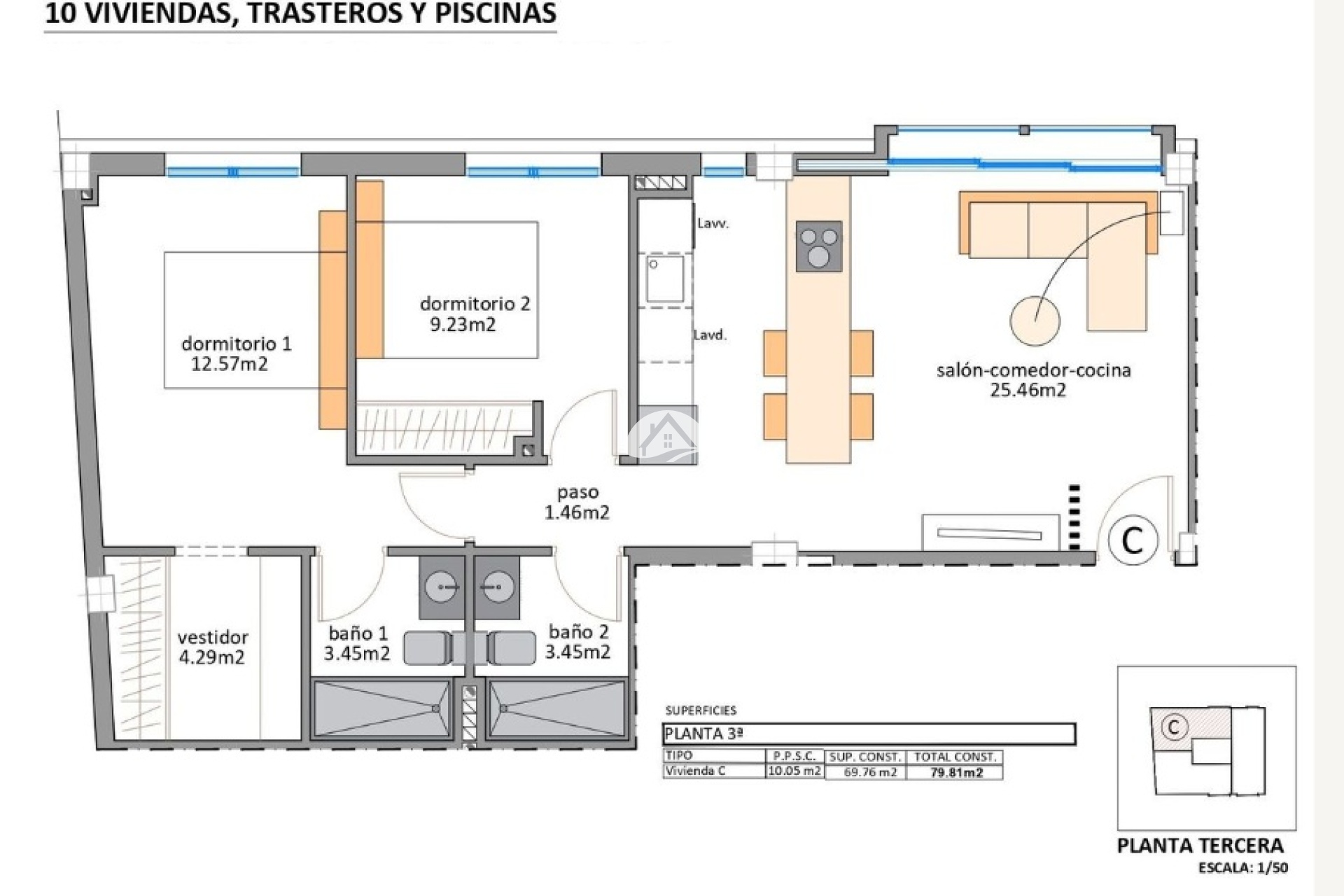 Located in San Pedro del Pinatar, this exclusive residential complex offers apartments and penthouses with stunning sea views. Just 120 meters from the coast, it allows you to enjoy the sea breeze and a privileged environment. The proximity to the airport, 45 kilometers away, facilitates access for those seeking a second home or permanent residence in a coastal setting. With only two properties available, a quiet and exclusive environment is guaranteed for its residents.