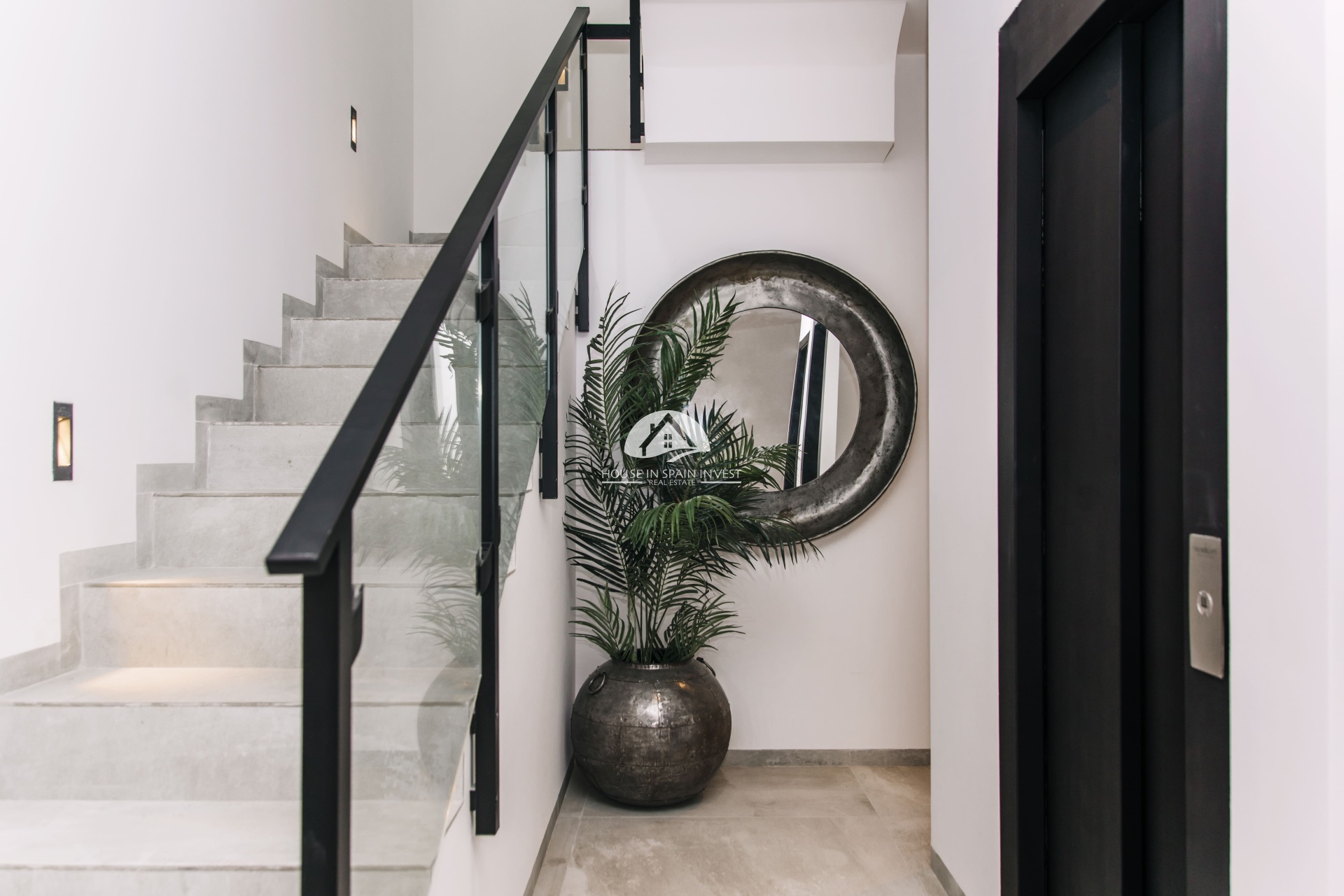 The interior of these villas in Rojales is designed to offer maximum comfort and functionality. Layout options include villas with 3, 4, or up to 6 bedrooms, adapting to the needs of different families. The bathrooms, ranging from 3 to 5 depending on the type, are equipped to offer comfort and style. The interior spaces are designed to make the most of natural light, creating a warm and welcoming atmosphere. The arrangement of the rooms and common areas is designed to offer a smooth and comfortable living experience, with quality finishes that complement the modern design of the villas.