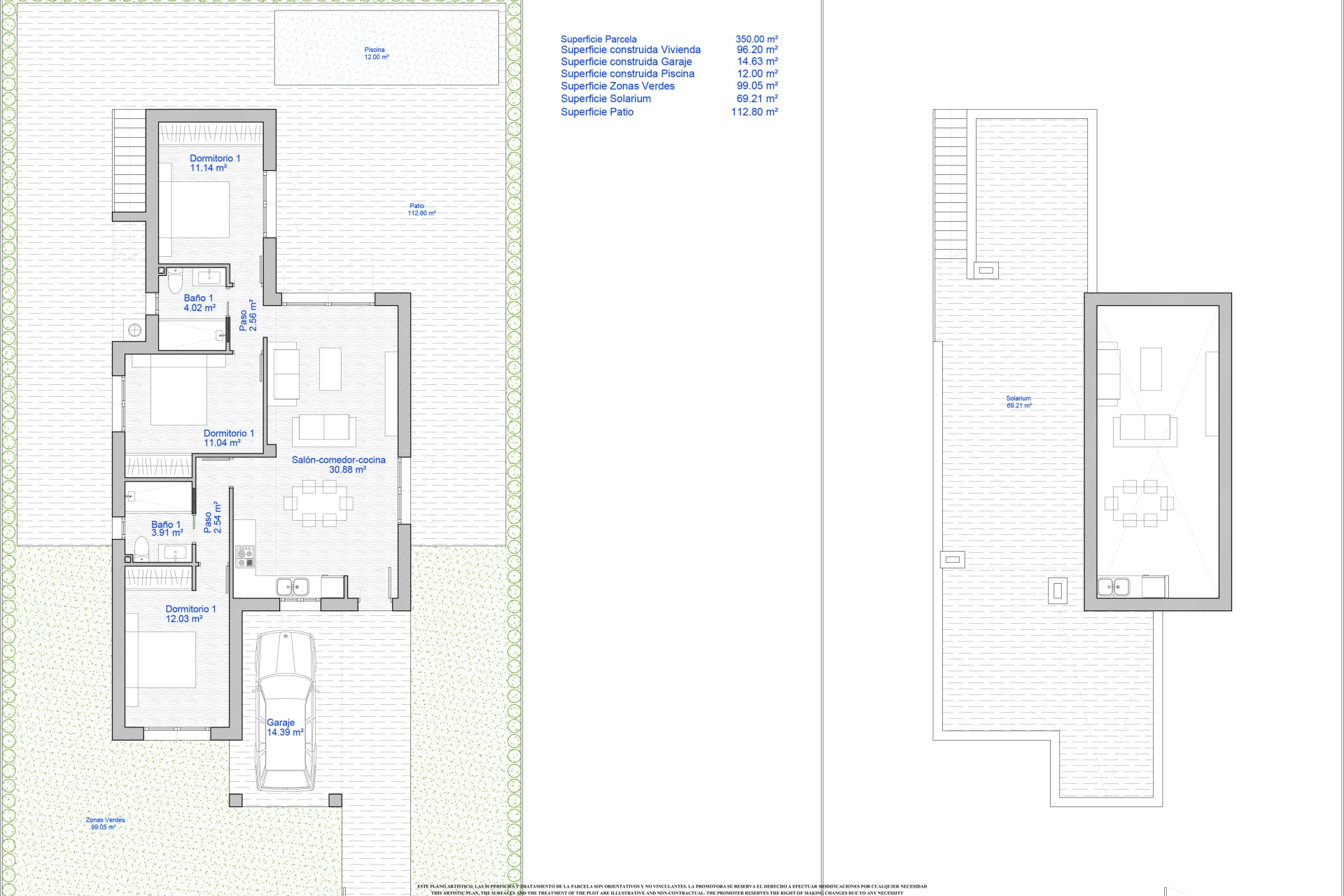 The homes feature an exterior design that combines functionality and aesthetics. Each property has a private garden, perfect for enjoying outdoor moments in a tranquil setting. The spacious terraces offer additional space for relaxation or entertaining guests, while the solarium provides an ideal spot for sunbathing and enjoying the views. Additionally, the presence of a pergola adds a touch of elegance and shade, creating a welcoming environment on sunny days. The inclusion of a private pool in each home allows for a refreshing swim without leaving the house, becoming a central element for family enjoyment.