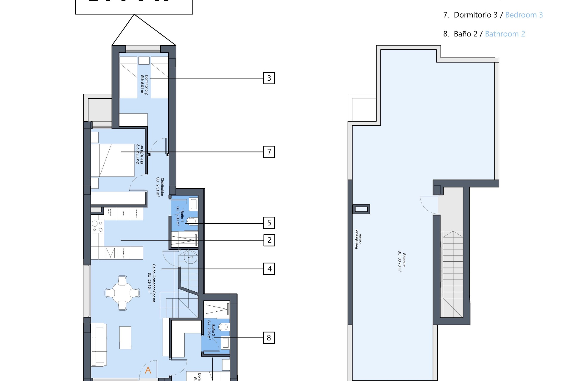The outdoor spaces of these homes in Dolores are designed to maximize enjoyment of the Mediterranean climate. Each bungalow has a private garden, perfect for creating a personal green space or outdoor recreation area. Additionally, the terraces offer an ideal place to relax, enjoy the views, and share outdoor moments. The inclusion of a solarium provides additional space for sunbathing or simply enjoying the tranquility of the surroundings. The strategic location of these homes allows for a serene and welcoming environment, ideal for those who value outdoor living.