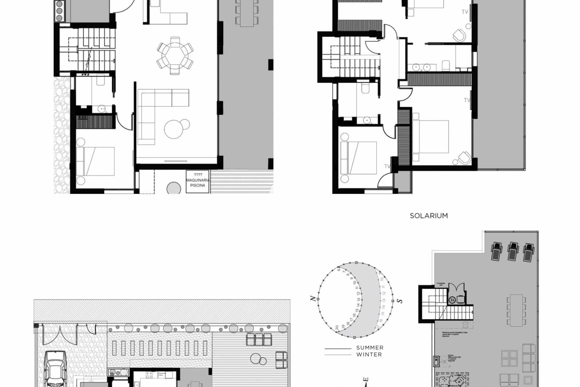 The exterior of these homes is a true oasis of relaxation. Each property features a private garden, perfect for enjoying the Mediterranean climate. The presence of a private pool adds a touch of luxury, allowing for a refreshing dip on the hottest days. Additionally, the terraces and solarium offer additional outdoor leisure spaces, ideal for family gatherings or simply enjoying a moment of tranquility. The pergola provides shade and a cozy spot to rest during the intense sun hours.