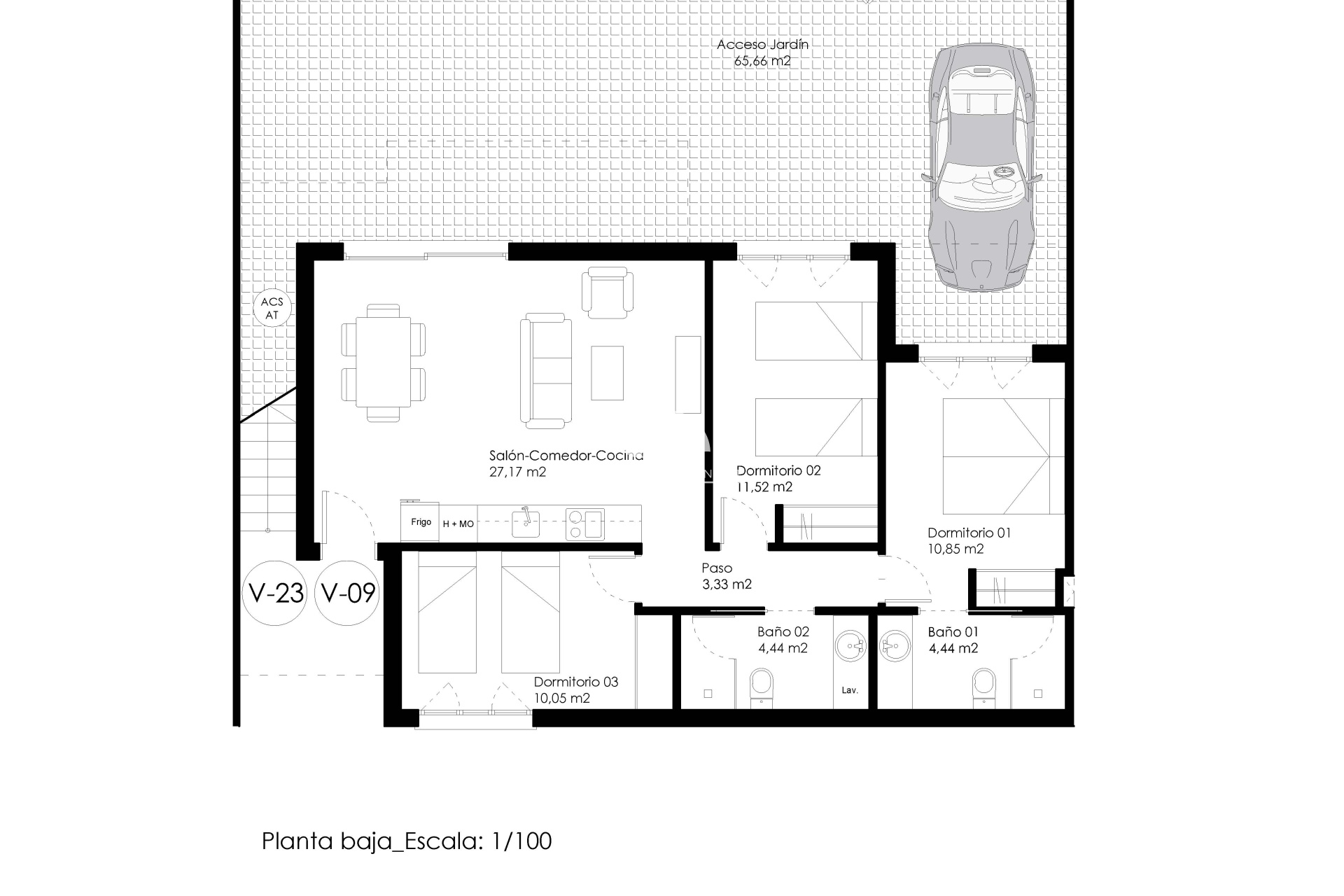 Located in the charming town of Pilar de la Horadada, this residential complex offers a selection of 28 bungalows designed to meet the needs of those seeking a comfortable and functional home. The location is ideal for those who wish to enjoy the tranquility of the Mediterranean coast, being just 4 km from the sea. Additionally, access to the airport is convenient, at a distance of 46 km, facilitating international travel. The offer includes two types of bungalows: high-bungalow and low-bungalow, each with unique features that cater to different lifestyles. The bungalows are designed to maximize comfort and functionality, offering well-distributed spaces and quality finishes. The pre-installation of air conditioning ensures a pleasant environment throughout the year, while built-in wardrobes provide efficient storage. The choice of materials such as porcelain stoneware for the floors reflects a commitment to durability and aesthetics, guaranteeing a modern and easy-to-maintain finish. This residential is an ideal option for families and couples seeking a peaceful and well-connected environment, with all the necessary amenities for a comfortable life.
