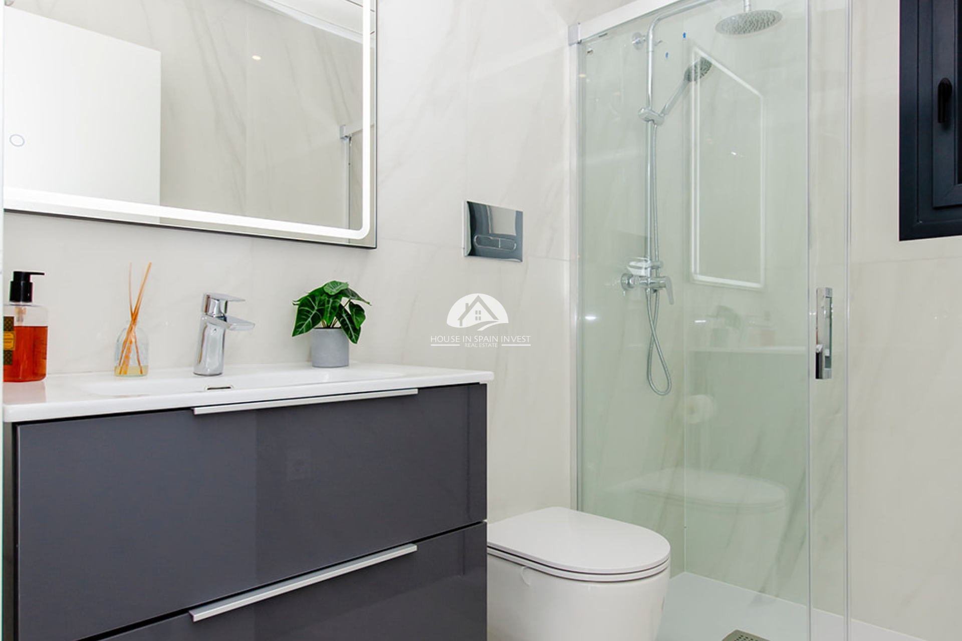The interior of these homes in Orihuela is designed with a focus on comfort and functionality. Ceramic floors add a modern touch and are easy to maintain. The homes come fully furnished, making moving in easy and allowing enjoyment of the new home from day one. The kitchen is equipped with high-quality appliances, and the built-in wardrobes in the bedrooms offer ample storage space. The air conditioning system, along with additional pre-installation, ensures a pleasant environment throughout the year. Electric blinds and the video intercom add an extra level of comfort and security.
