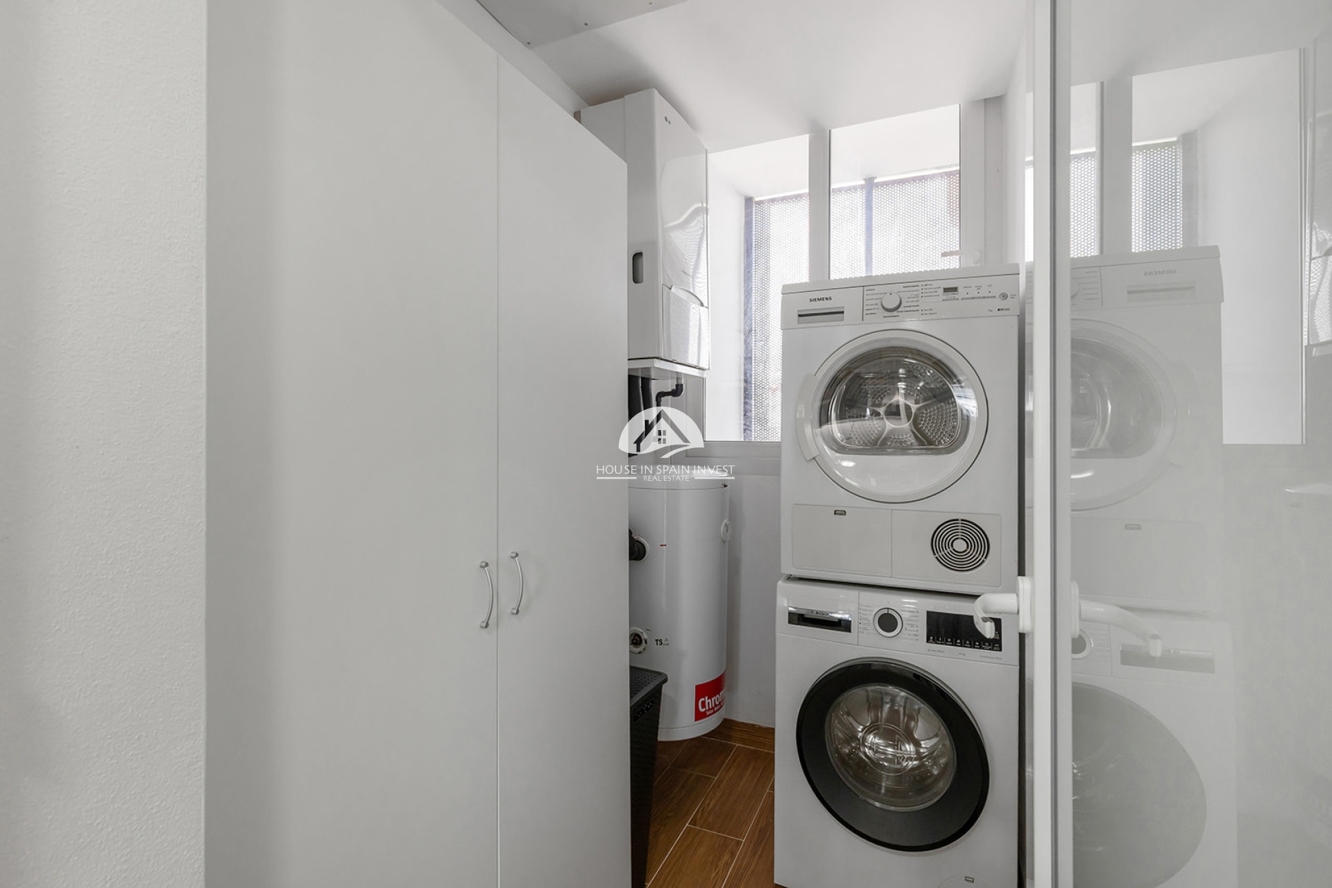 The property features 2 bedrooms and 2 bathrooms, designed in a modern and functional layout to ensure maximum comfort. From the bright living room, you access a charming 12 m² terrace, perfect for enjoying the sunrise and the sea breeze. The highlight of this penthouse is its spectacular private 83 m² solarium, equipped with a jacuzzi and relaxation areas—an authentic private oasis with endless sea views, ideal for enjoying the Mediterranean climate all year round.