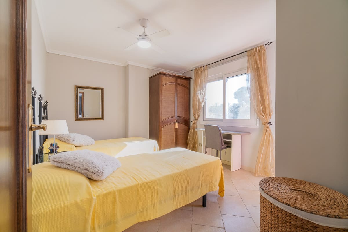 La vivienda se encuentra en el bloque final de la urbanización, el más cercano al mar y con unas estupendas vistas abiertas hacia los jardines comunitarios. Cuenta con un hall de entrada al Edificio a través de los jardines comunitarios, desde la entrada se accede por el ascensor a las viviendas y al parking en el sótano del edificio, con plazas no asignadas pero posibilidad de dejar su vehículo protegido del sol y dentro de las zonas comunitarias en los meses más concurridos de verano al poder aparcar el vehículo fácilmente y con comodidad, lo que hace mucho más fácil el uso y disfrute de la vivienda.