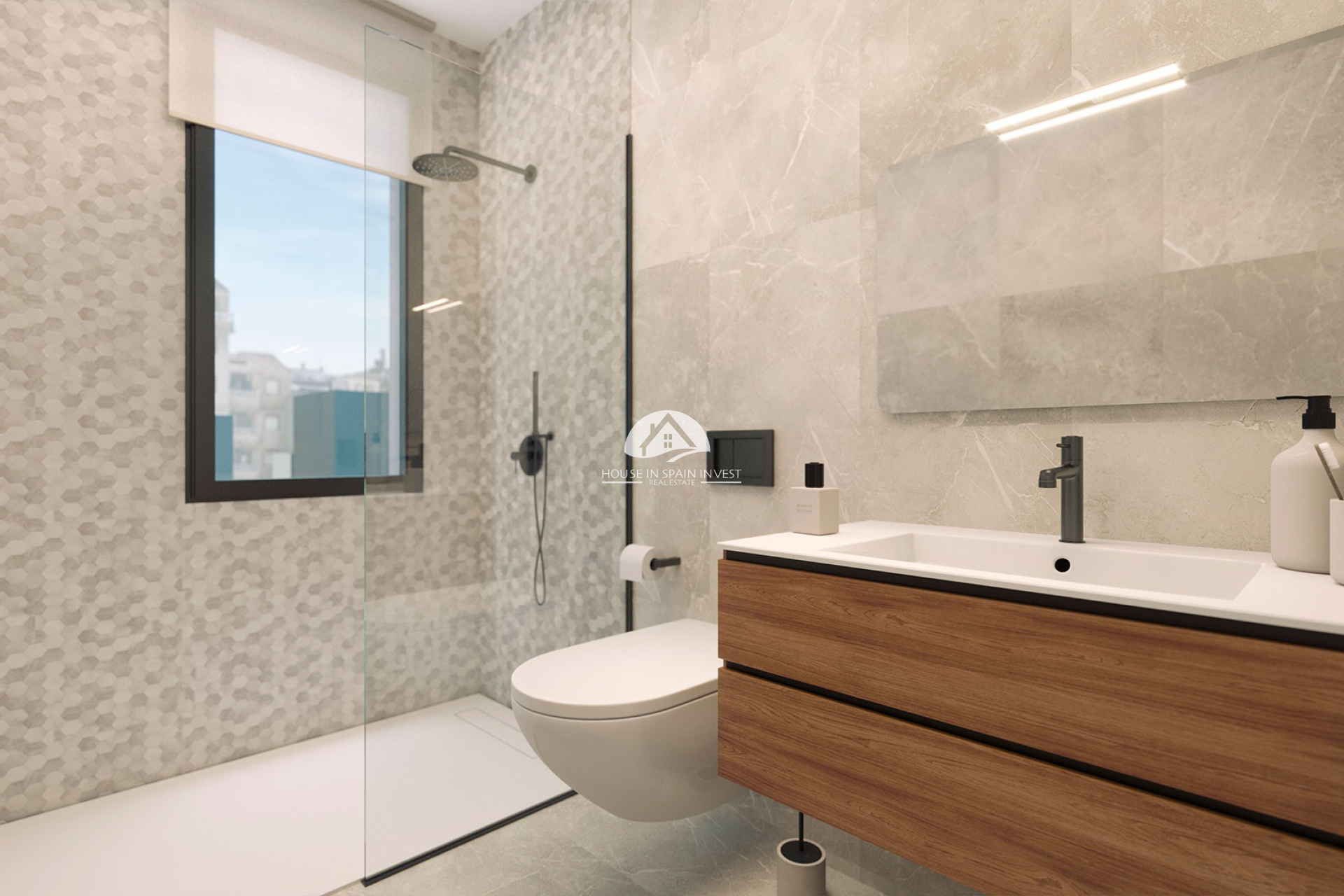 Los interiores de los apartamentos y áticos han sido diseñados con atención al detalle, ofreciendo un ambiente moderno y acogedor. Los suelos de gres porcelánico aportan un toque de elegancia y durabilidad a cada espacio. La comodidad está garantizada con la preinstalación de aire acondicionado, asegurando un ambiente agradable durante todo el año. Las cocinas están equipadas con electrodomésticos de alta calidad, facilitando el día a día. Los armarios empotrados ofrecen un almacenamiento eficiente y discreto. Además, cada propiedad cuenta con un sistema de videoportero, proporcionando seguridad y tranquilidad a los residentes. Las opciones de distribución incluyen propiedades de 1 o 2 dormitorios y 1 o 2 baños, adaptándose a diferentes necesidades y preferencias. Las terrazas privadas son un espacio adicional para disfrutar del aire libre y las vistas.