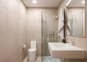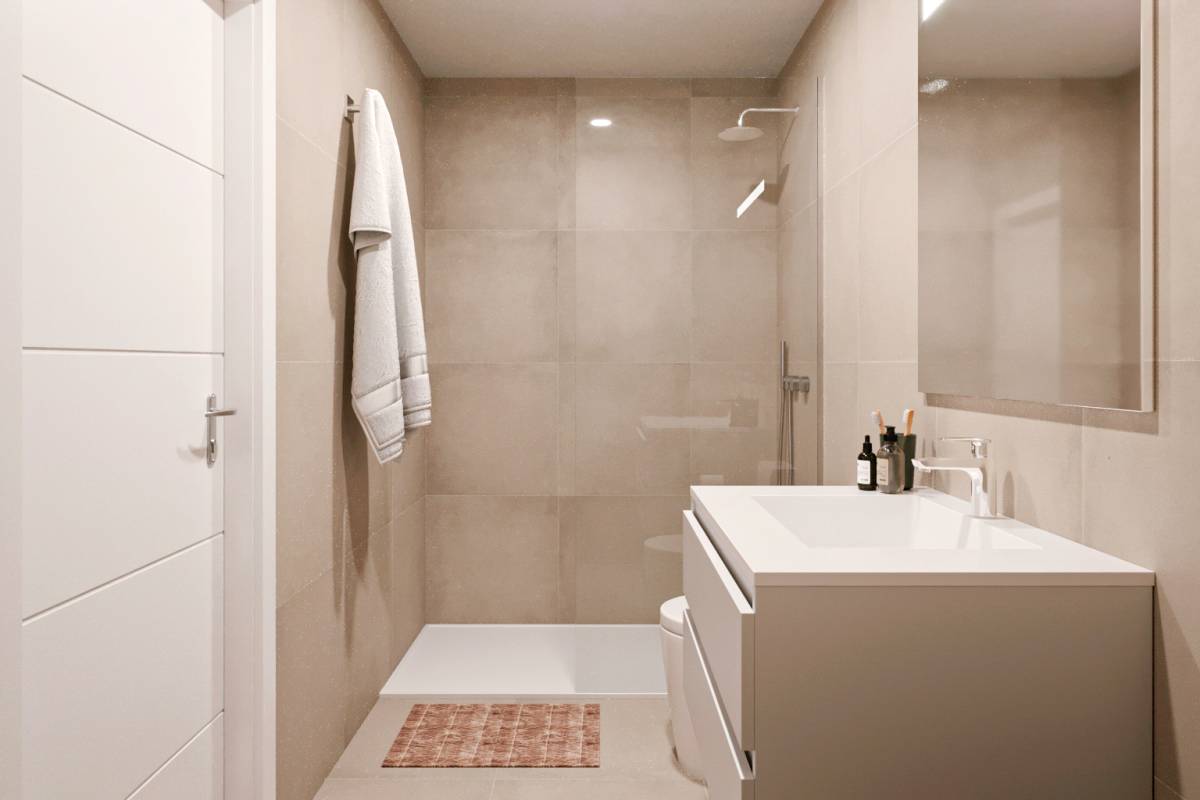 Het interieur van de bungalows is ontworpen om een moderne en comfortabele ruimte te bieden. Met 2 slaapkamers en 2 badkamers is elke woning uitgerust om te voldoen aan de behoeften van een gezin of stel. De vloeren van porselein tegels geven een vleugje verfijning en zijn gemakkelijk te onderhouden. De keuken is uitgerust met moderne apparatuur, wat het dagelijks leven vergemakkelijkt. Elektrische rolluiken en de video-intercom voegen een extra niveau van comfort en veiligheid toe. De airconditioning zorgt het hele jaar door voor een aangename sfeer, terwijl de inbouwkasten veel opbergruimte bieden.