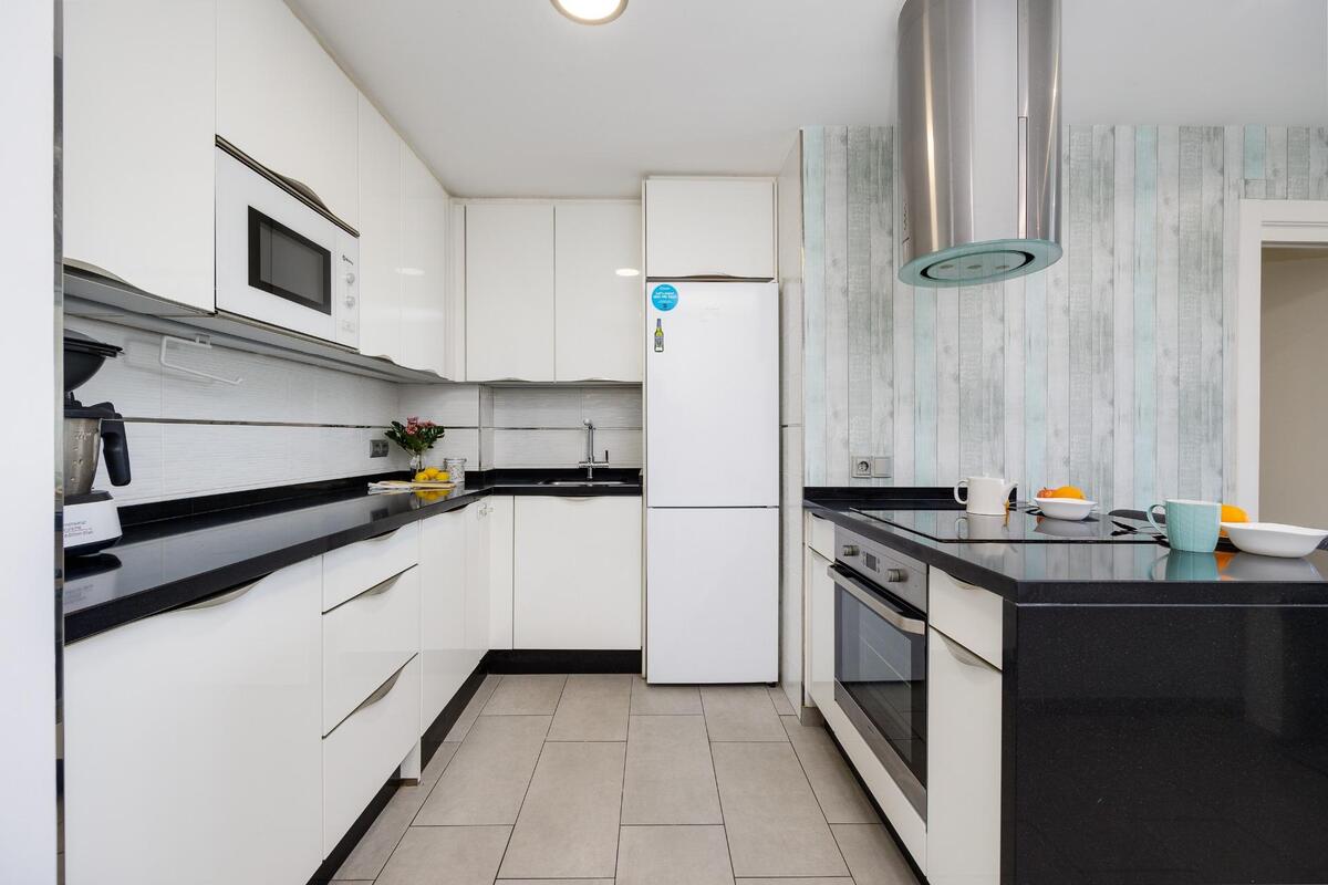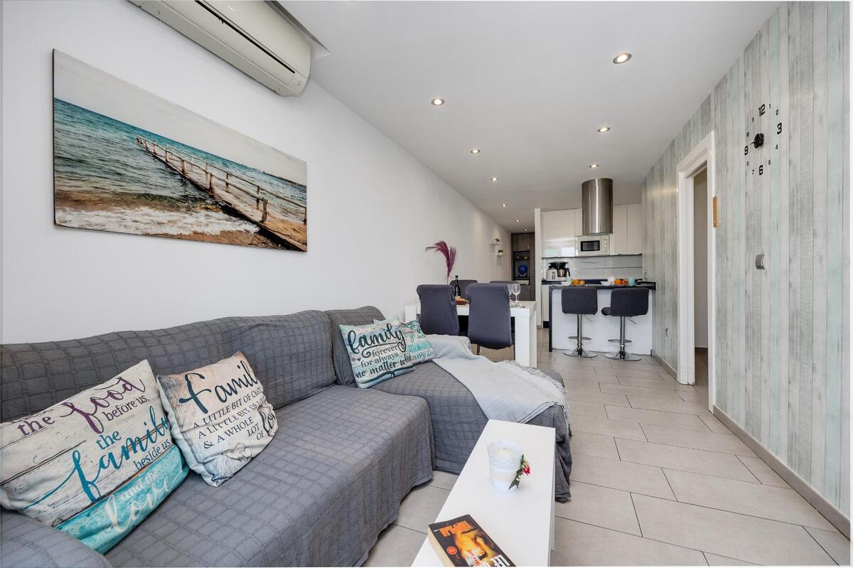 Het gerenoveerde appartement ligt op de 3de verdieping in een gebouw met lift. Het appartement heeft een inkomhal, 2 slaapkamers en 1 badkamer, een gezellige woonkamer met eethoek en een geïntegreerde ingerichte keuken met ontbijtbar. Aan de woonkamer ligt een terras. A/C. Het appartement beschikt over een ondergrondse parkeerplaats in het gebouw.