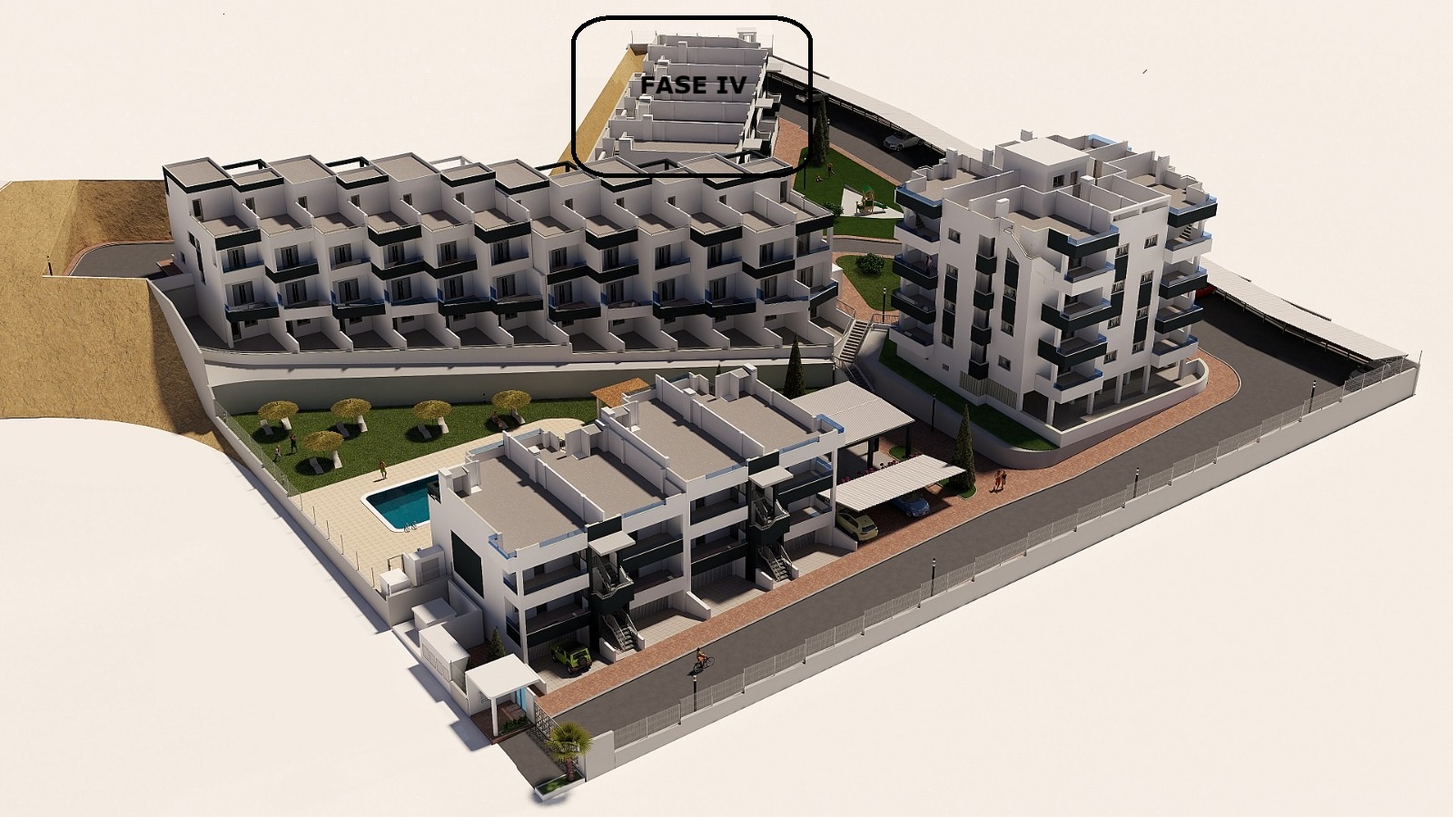 De 4de en laatste fase bestaat uit 12 woningen waarvan 6 op de 1ste verdieping met een dakterras van gemiddeld 93m2 vanaf €262.000 en 6 op het gelijkvloers met ruime terrassen voorin en een open patio achterin vanaf €245.000.