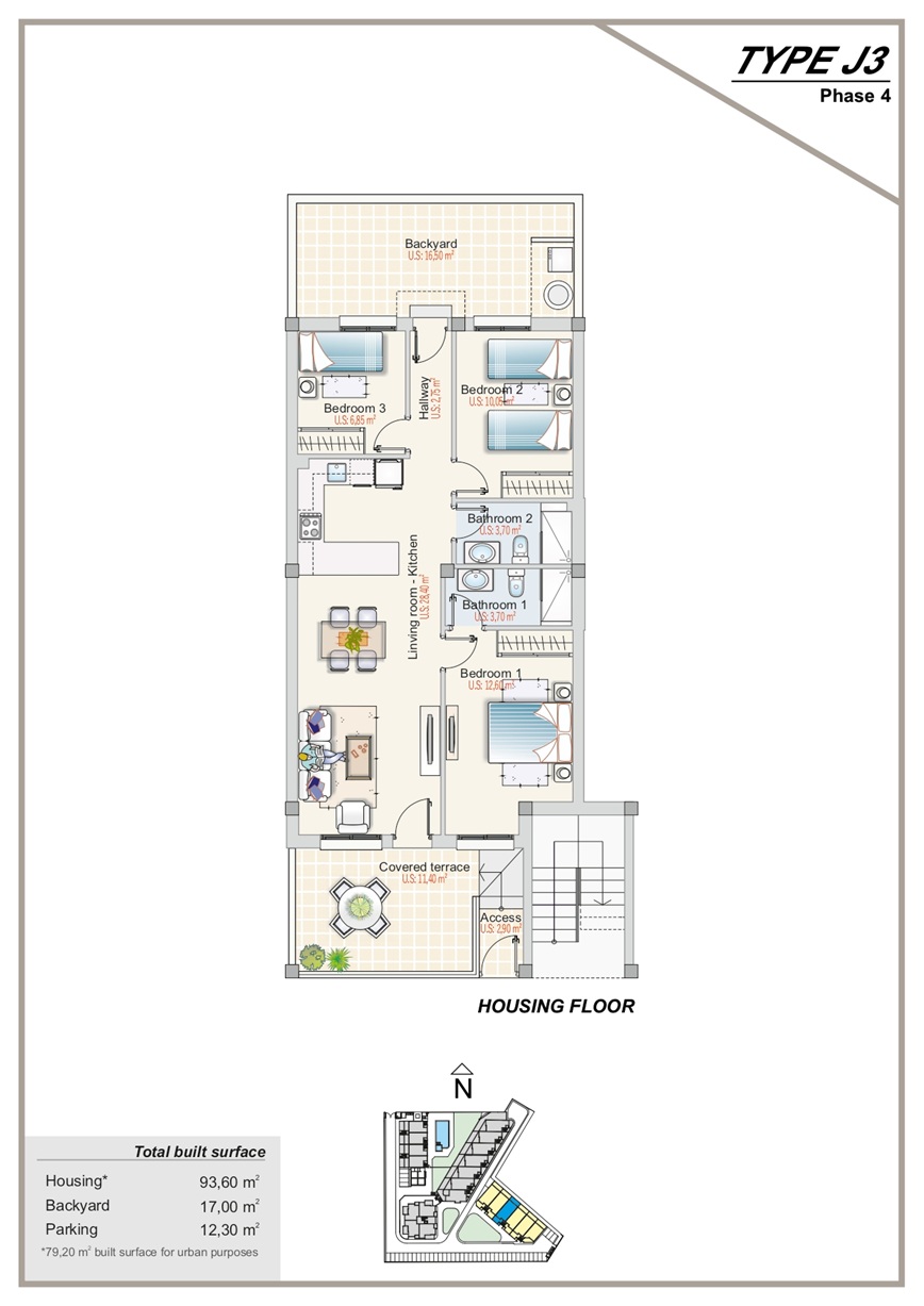 Alle woningen hebben 2/3 slaapkamers met inbouwkasten en 2 badkamers waarvan 1 en-suite. De woningen hebben een heldere woonkamer met een open plan moderne keuken. Alle woningen worden volledig gemeubeld verkocht, inclusief huishoudelijke apparaten en centraal airconditioning systeem.