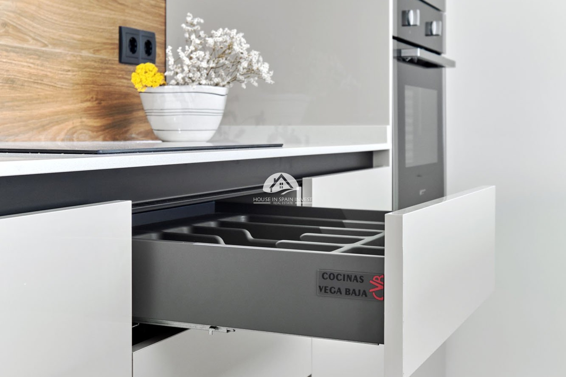 Het interieur van de woningen is zorgvuldig ontworpen om comfort en functionaliteit te bieden. De bungalows zijn beschikbaar in configuraties van 2 en 3 slaapkamers, allemaal met 2 badkamers, wat voldoende ruimte garandeert voor gezinnen van verschillende groottes. De keramische vloeren geven een moderne uitstraling en zijn gemakkelijk te onderhouden, terwijl de inbegrepen apparaten het dagelijks leven vanaf dag één vergemakkelijken. De airconditioning zorgt voor een aangename omgeving het hele jaar door, en de ingebouwde kasten bieden praktische en efficiënte opbergruimte. Elk detail is doordacht om een gezellige en functionele woning te bieden.