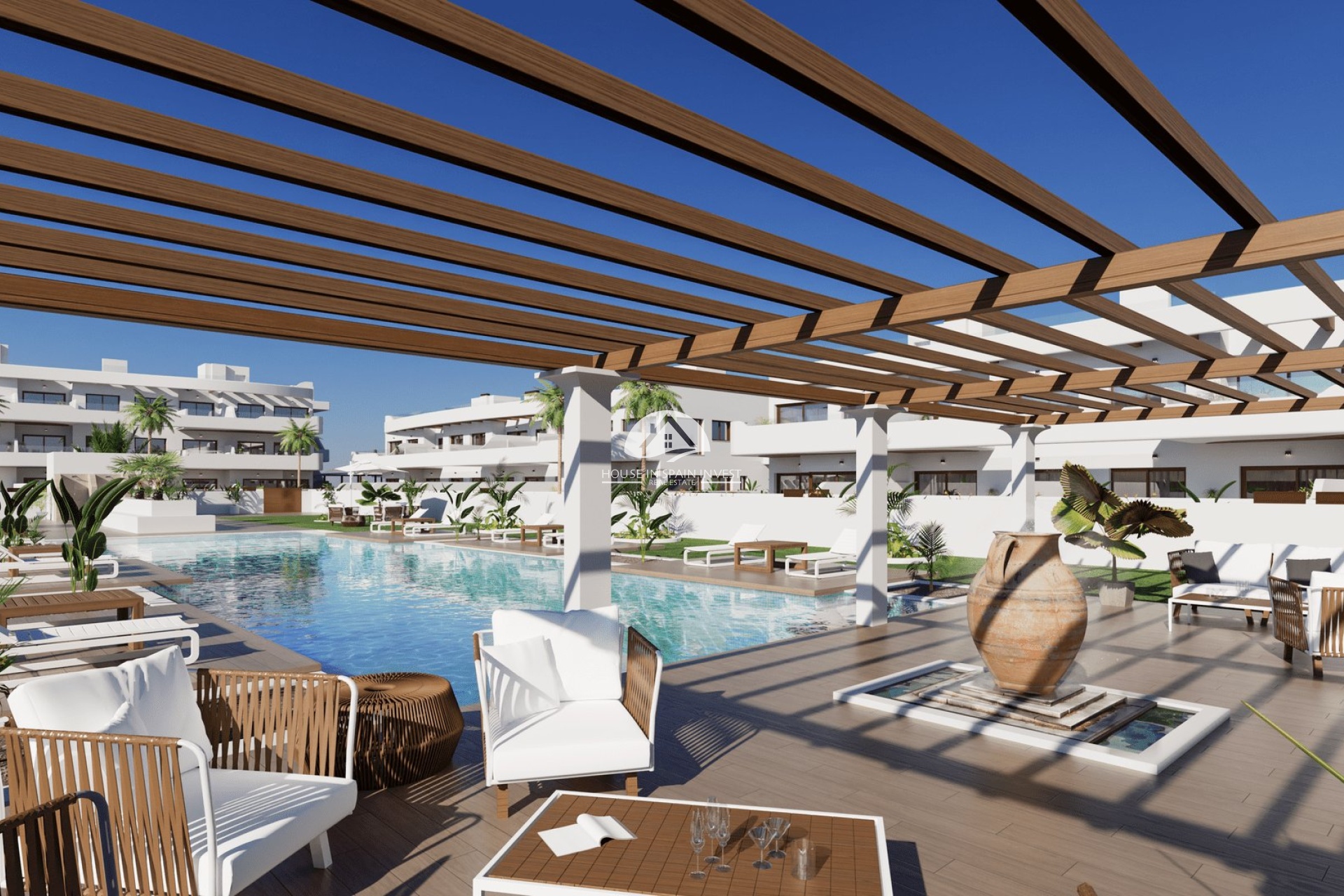 Het interieur van de woningen in deze residentie in Los Alcázares is ontworpen om maximaal comfort en functionaliteit te bieden. Met opties van 2 of 3 slaapkamers en 2 badkamers is elke woning uitgerust met moderne kenmerken die het dagelijks leven vergemakkelijken. De porseleinen tegelvloeren geven een vleugje verfijning en zijn gemakkelijk te onderhouden, terwijl de ingebouwde kasten efficiënte en discrete opslag bieden. De pre-installatie van airconditioning zorgt ervoor dat elk huis voorbereid is om het hele jaar door een aangename temperatuur te behouden. Bovendien vergemakkelijkt de aanwezigheid van keukenapparatuur de verhuizing en het begin van een nieuw leven in deze woningen. De indeling van de ruimtes is ontworpen om natuurlijk licht te maximaliseren en een gezellige en functionele sfeer te bieden, ideaal voor dagelijks gebruik en voor het ontvangen van gasten.