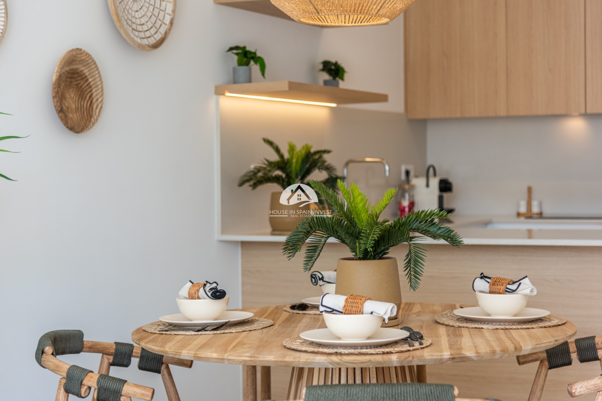 Het interieur van de woningen is zorgvuldig ontworpen om comfort en stijl te bieden. De keramische vloeren geven een moderne uitstraling en zijn gemakkelijk te onderhouden. De eigendommen hebben 3 slaapkamers en de optie van 2 of 3 badkamers, aangepast aan verschillende gezinsbehoeften. Ingebouwde kasten optimaliseren de opslagruimte, terwijl elektrische rolluiken en de pre-installatie van airconditioning zorgen voor een comfortabele omgeving in elk seizoen. De keuken is uitgerust met apparatuur, wat het dagelijks leven vergemakkelijkt. Bovendien biedt het optionele solarium extra ruimte om aan te passen aan de voorkeuren van elke bewoner.