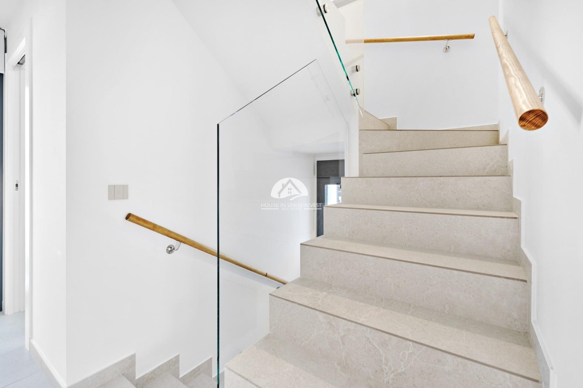 This exclusive residential complex offers luxury villas with plots of 400 m2 and an impressive 8x3.5m pool. These modern homes offer 3 bedrooms, 3 bathrooms, with a usable area starting from 197.41 m2 distributed in a spacious living-dining room and a fully equipped kitchen, as well as a garden, solarium, and pool. The villas stand out for their bright and open spaces, providing exceptional views and optimizing every corner of the home.~~High-quality finishes and interiors merge in a contemporary luxury concept, where elegance, comfort, and refinement meet buyers' desires. In the design and construction of this residential complex, fundamental aspects such as energy efficiency and the use of high-quality materials have been taken into account, guaranteeing a sustainable and durable lifestyle.