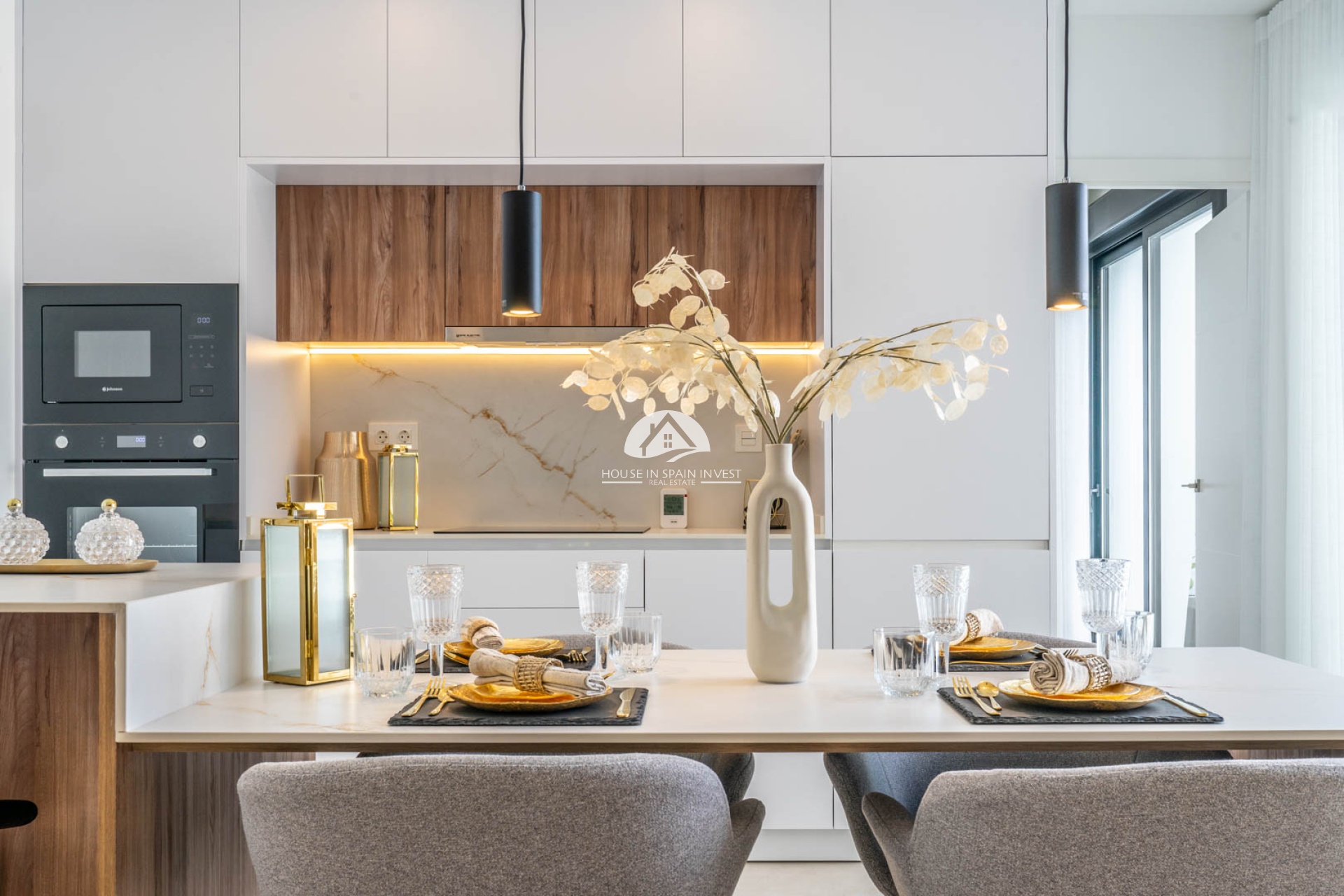 The exteriors of these independent homes are designed to fully enjoy the Mediterranean climate. Each property features a private garden, perfect for creating a personal oasis of tranquility. Additionally, the homes have a terrace and solarium, ideal for outdoor relaxation or gatherings with friends and family. The inclusion of a private pool in each home adds a touch of luxury and exclusivity, allowing for refreshing dips on the hottest days. Access to a private garage ensures the convenience and security of vehicles.
