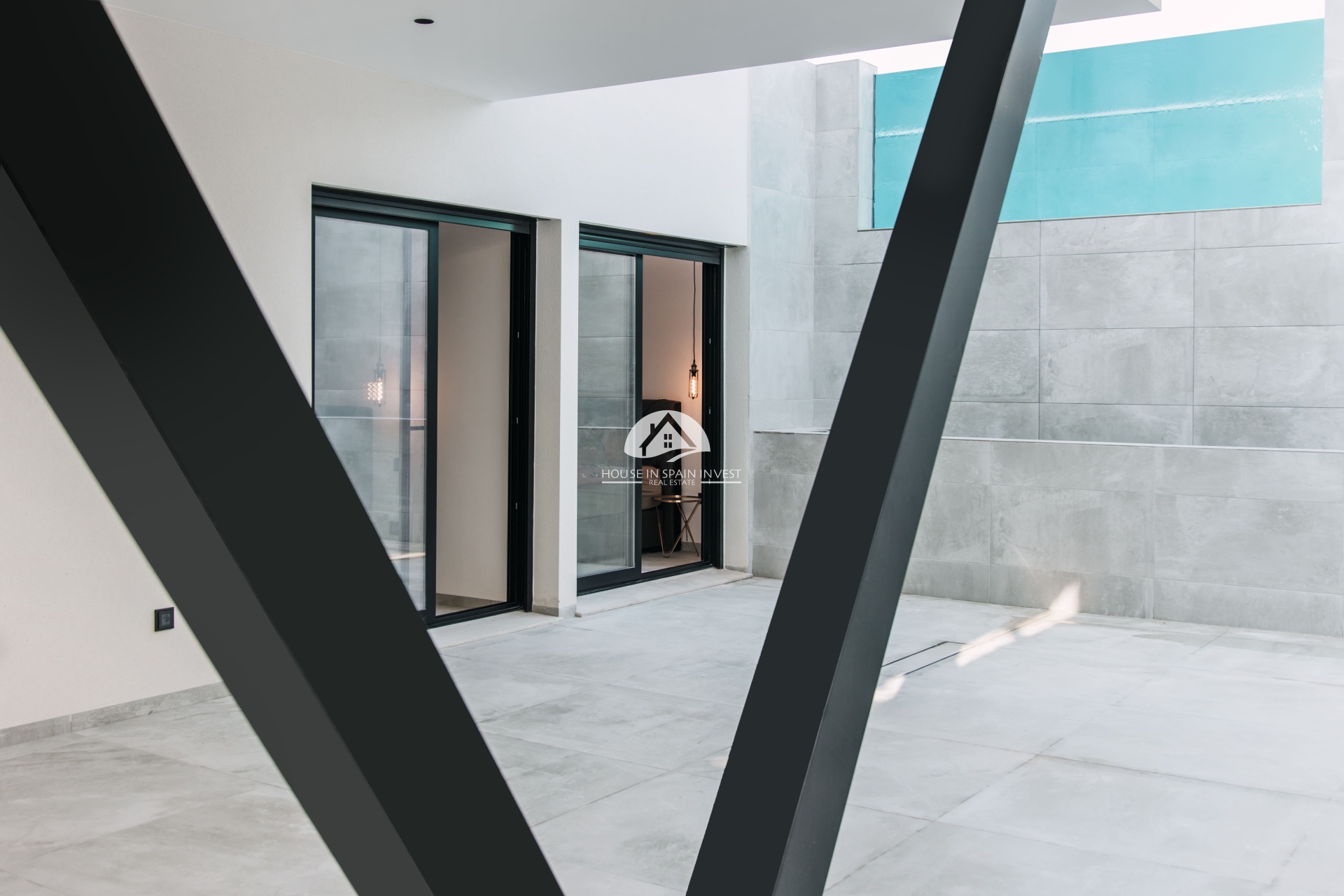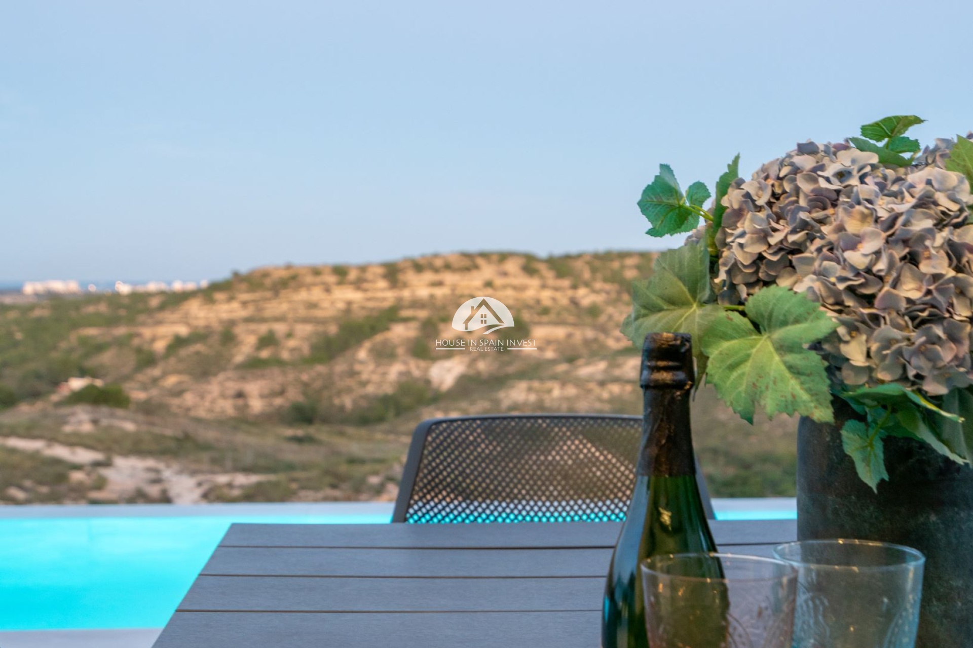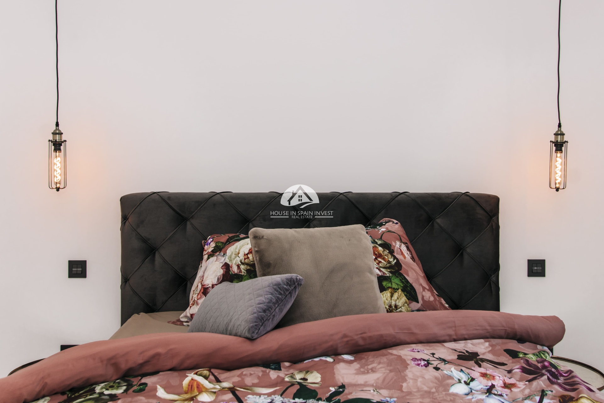 The exterior design of these villas in Rojales is intended to integrate the natural beauty of the surroundings with modern comfort. Each villa features a private garden, perfect for enjoying the Mediterranean climate. The spacious terraces offer additional outdoor space, ideal for relaxing or entertaining guests while enjoying the sea views. Additionally, the properties include a solarium, providing an elevated spot to further appreciate the surrounding landscape. The proximity to the sea, just 4.6 km away, allows for enjoying the sea breeze and coastal walks whenever desired.