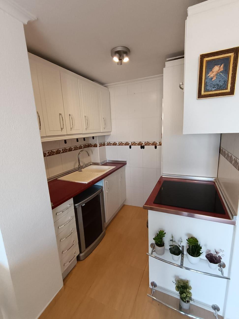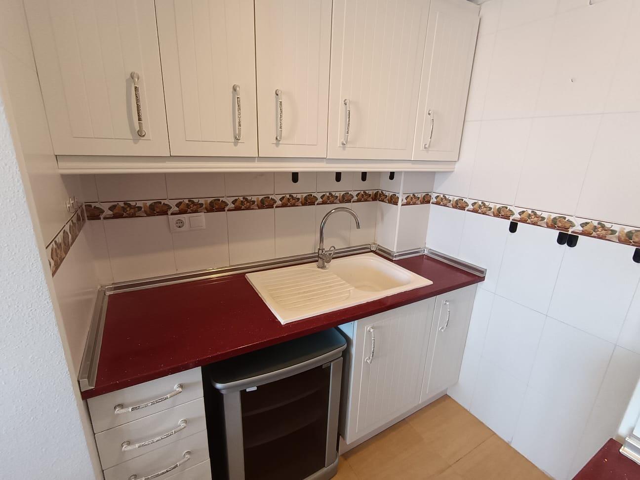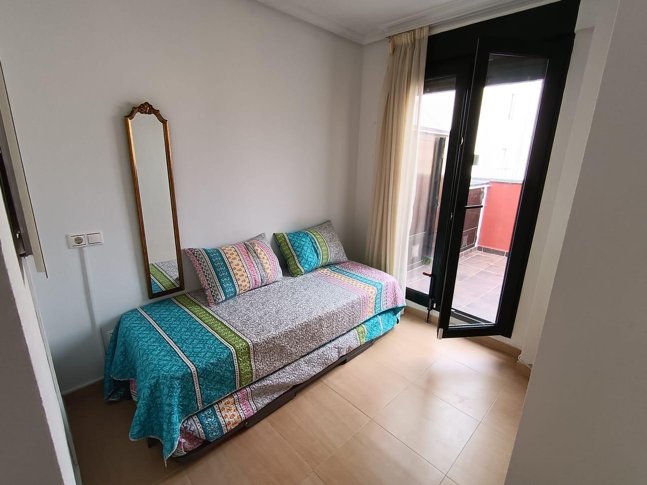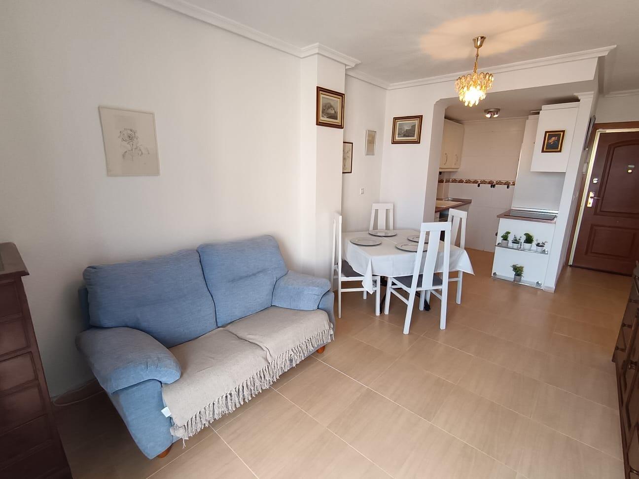 The penthouse lies on the fourth and last floor of a building with an elevator. The apartment comprises an entrance hall, two bedrooms, both with access to the corner terrace, one bathroom with a shower, an American plan fitted kitchen, and a bright living room with dining area. Adjacent lies a 30m² southeast-facing corner terrace with awnings and aluminum storage cabinets. A/C. La Mata beach lies 270m away.